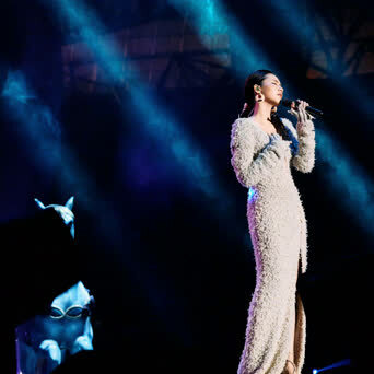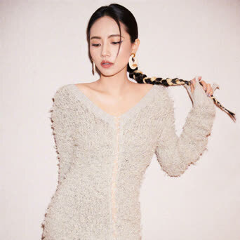 歌手刘惜君新造型释出,身穿米白色毛圈连衣裙,胸前缝隙的设计有种若隐若现的性感,高开衩的裙摆秀出美腿,搭配夸张耳环和金色编发,时尚迷人。